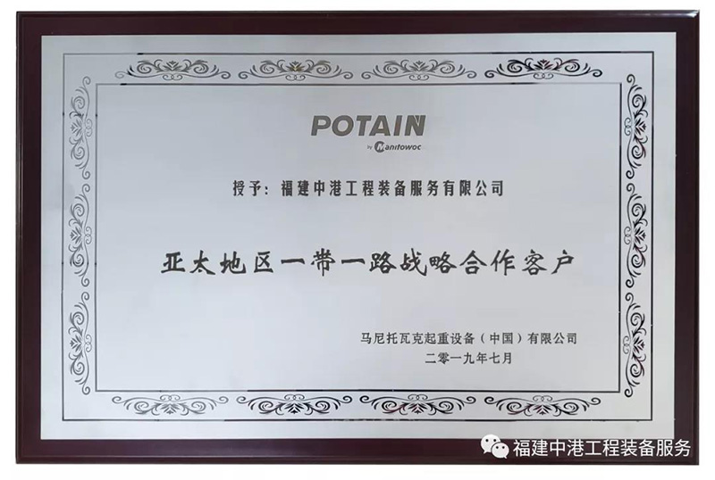 作為一家綜合性專業(yè)化工程裝備服務公司,中港公司立足“高起點建設、高質(zhì)量管理、高效能運作、高標準服務”的高地平臺,始終如一堅持規(guī)范運作、科學管理,憑借全方位的技術(shù)支持、強大的設備實力和安全可靠的安裝維修能力,贏得了顧客的忠誠和美譽。先后榮獲“中聯(lián)重科五千萬級戰(zhàn)略合作伙伴”、“中建二局第一建筑工程有限公司AAA誠信供方”、“第十三屆全國建筑機械租賃企業(yè)設備管理優(yōu)秀單位”、“中建二局第一建筑工程有限公司2015年度優(yōu)秀分供方”、“中建海峽建設發(fā)展有限公司2016年優(yōu)秀合作企業(yè)”、“中建三局集團有限公司(粵)2017年度良好合作單位”、“2018年全國建筑施工機械租賃50強企業(yè)”、“廣東省建筑機械租賃、安裝企業(yè)信用評價B級”、“2020年中國塔機租賃50強”等。